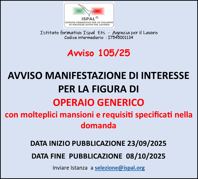 Inviare la seguente istanza: istanza_avviso_105_ manifestazione_interesse all’indirizzo selezione@ispal.org.